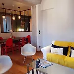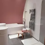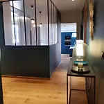 Appartement Design Rouen-Gare Avec Parking Prive features a balcony and a dining area, equipped with modern amenities such as high-speed internet and a TV set to enhance your stay. The property is also furnished with a work desk. A bathroom has a separate toilet and a bath, as well as hairdryers and bath sheets.